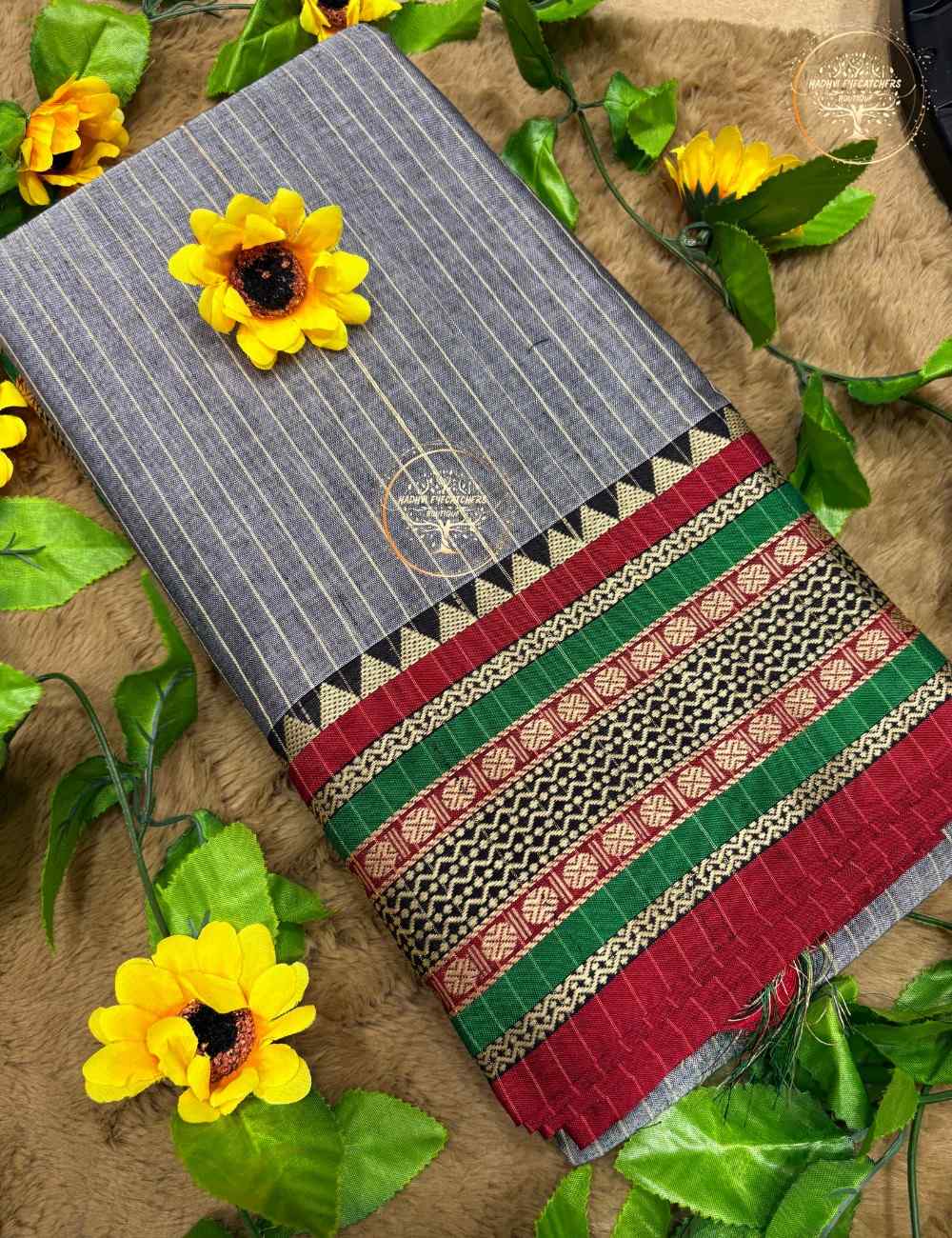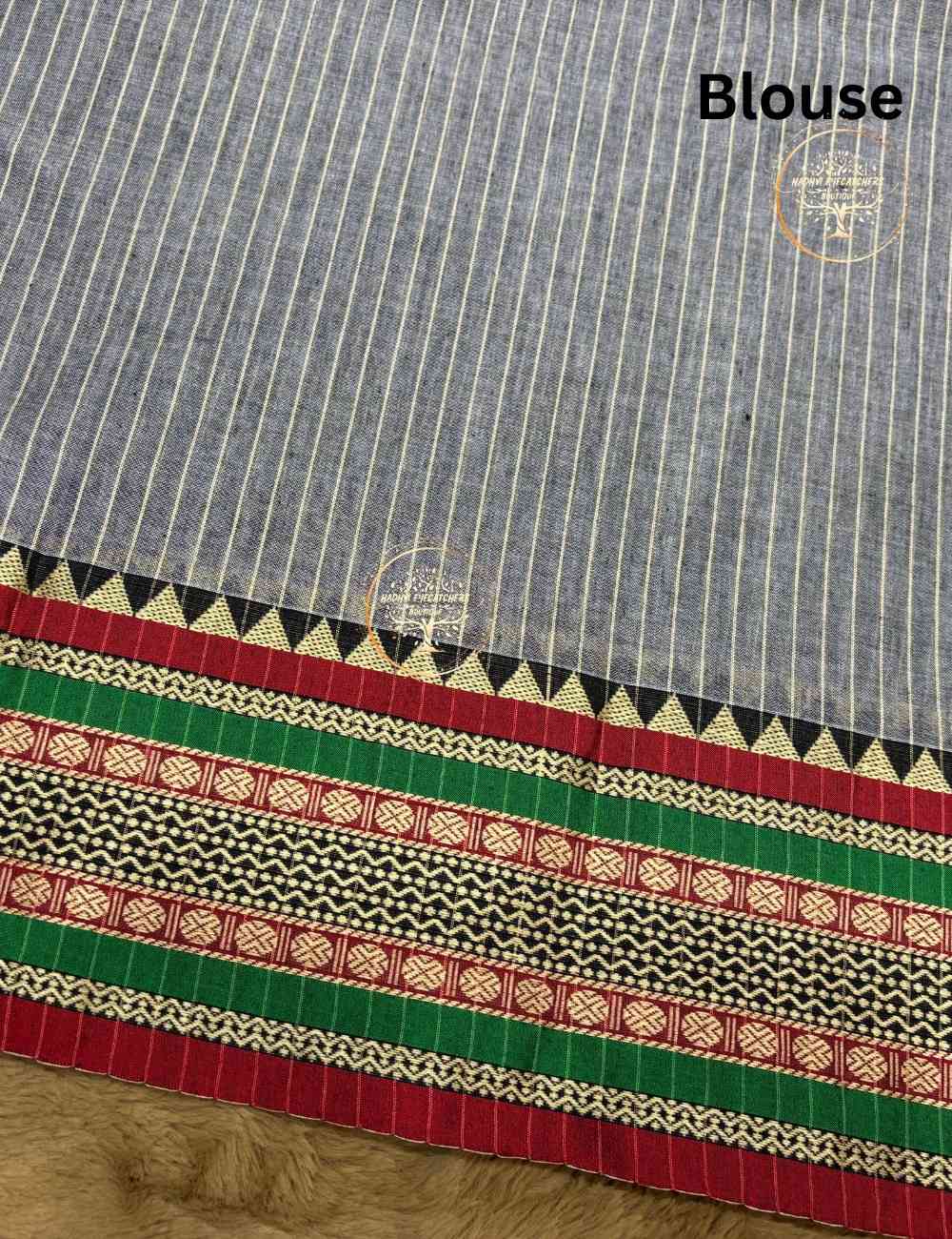Crafted from 100% handwoven cotton, this saree offers a crisp, breathable drape with enduring structure. It resists shrinkage and fading, making it ideal for everyday wear, cultural gatherings, and heritage dressing. The color palette is earthy yet vibrant, pairing beautifully with blouses in maroon, black, or deep green.