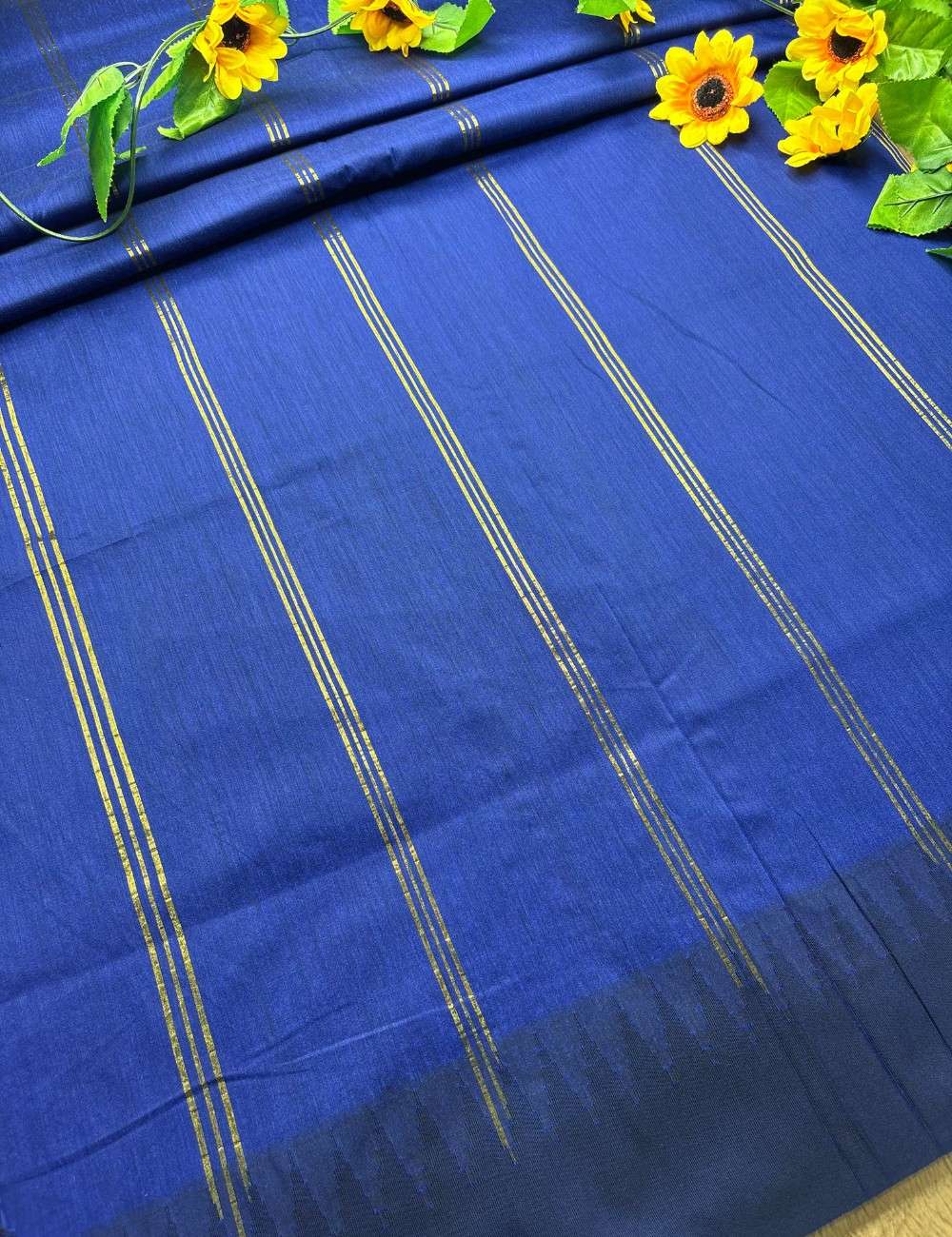 Handwoven in Raga Kalyani cotton with korvai temple border and chit pallu — breathable, structured, and perfect for women who appreciate subtle tones with handcrafted detail. The royal blue border adds a majestic finish to the calm body color, making this saree a timeless blend of softness and strength.