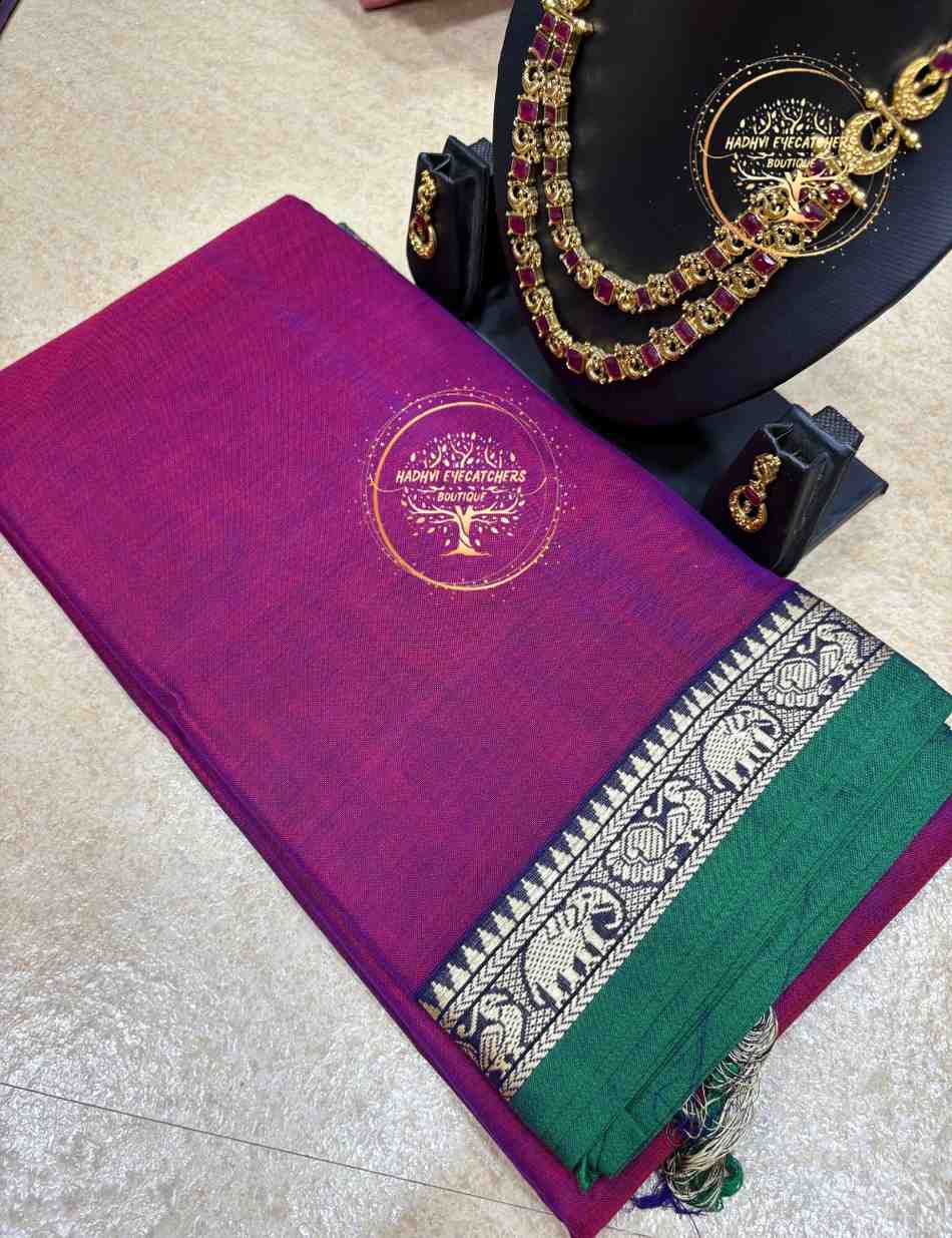 The body comes in rich, elegant solid shades that pair beautifully with contrast borders and pallus. Its understated texture makes it suitable for both daily wear and special occasions. The saree drapes effortlessly, making it ideal for beginners as well as experienced saree lovers. Perfect for office wear, temple visits, casual gatherings, and festive mornings. Each piece reflects the authenticity of Narayanpet handloom weaving. A timeless cotton saree that blends comfort, tradition, and style seamlessly.