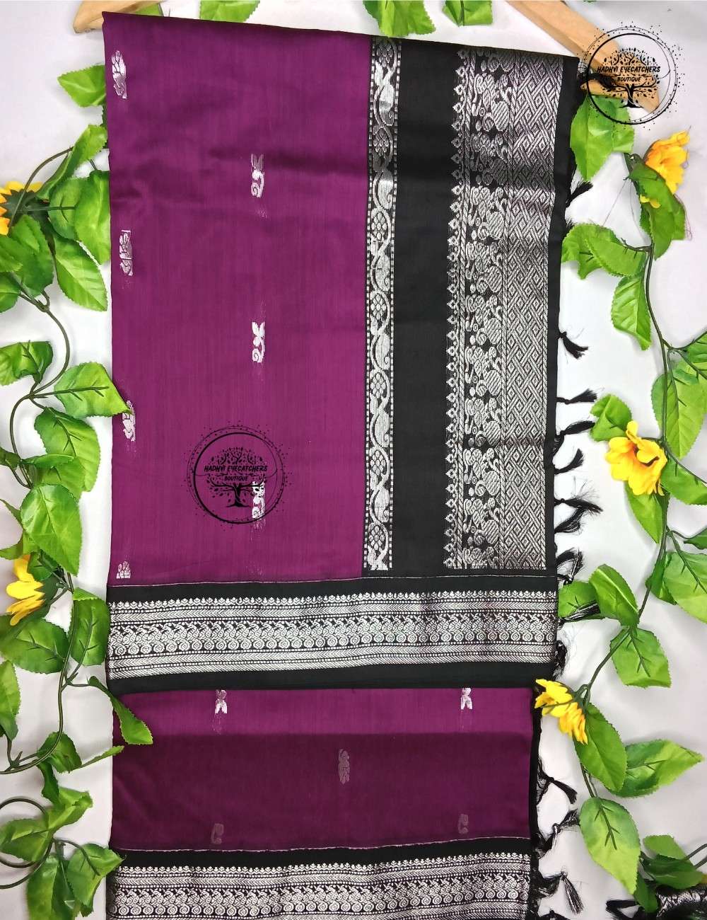 Elevate your everyday ethnic wardrobe with this beautifully crafted brinjal purple Kalyani cotton saree. The body comes in a deep, rich purple tone highlighted with subtle silver buttis that add just the right touch of elegance.