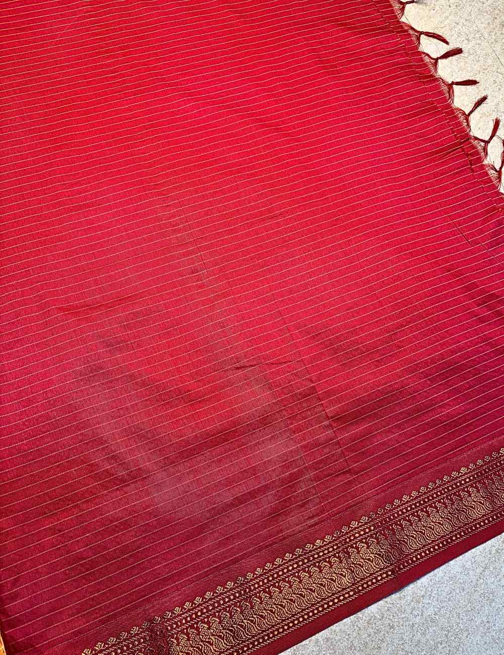 Handloom woven in durable acrylic-cotton blend, the saree offers breathable comfort and a structured drape that holds beautifully. The matching red blouse completes the look with elegant clarity, ensuring this saree remains a timeless addition to any festive wardrobe.