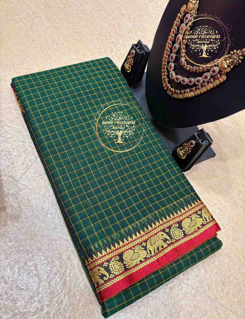 The Narayanpet Cotton Small Checks Saree is a beautiful blend of traditional craftsmanship and everyday practicality. Woven using pure cotton, this saree offers exceptional comfort and breathability, making it ideal for long hours of wear. The subtle small checks pattern across the body adds a refined texture while maintaining a classic look. Its traditional woven border lends a graceful contrast that enhances the overall elegance of the saree. Known for durability, Narayanpet cotton sarees retain their charm even after repeated washes.