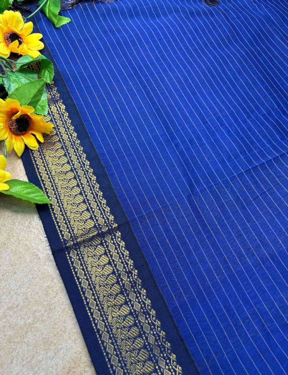 Handloom woven from a durable acrylic-cotton blend, this saree offers breathable comfort, structured drape, and long-lasting wear. The matching royal blue blouse completes the look with elegant clarity, making this saree a timeless choice for women who appreciate subtle tones and intricate craftsmanship.