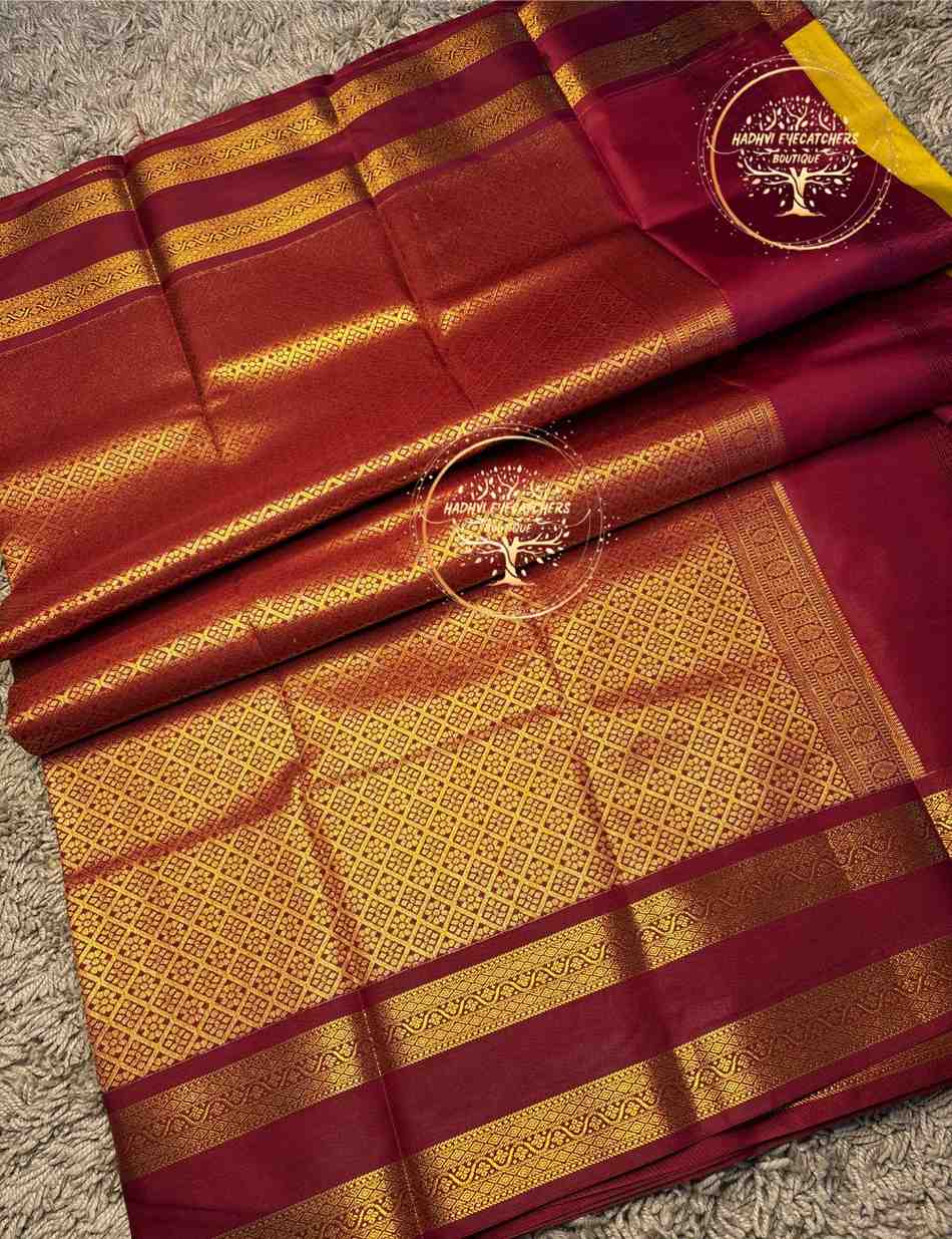 This stunning Kanchi Soft Silk Saree in a bold royal blue shade is a timeless addition to any silk saree collection. Made from fine-quality soft silk, the saree offers a smooth sheen and elegant drape. The body features small gold zari buttas that add a refined decorative touch while keeping the design balanced. A rich maroon border woven with intricate gold zari patterns enhances the saree’s traditional charm. The pallu complements the border with coordinated zari work, creating a cohesive and luxurious look. This Kanchi soft silk saree is perfect for weddings, receptions, and grand festive occasions.