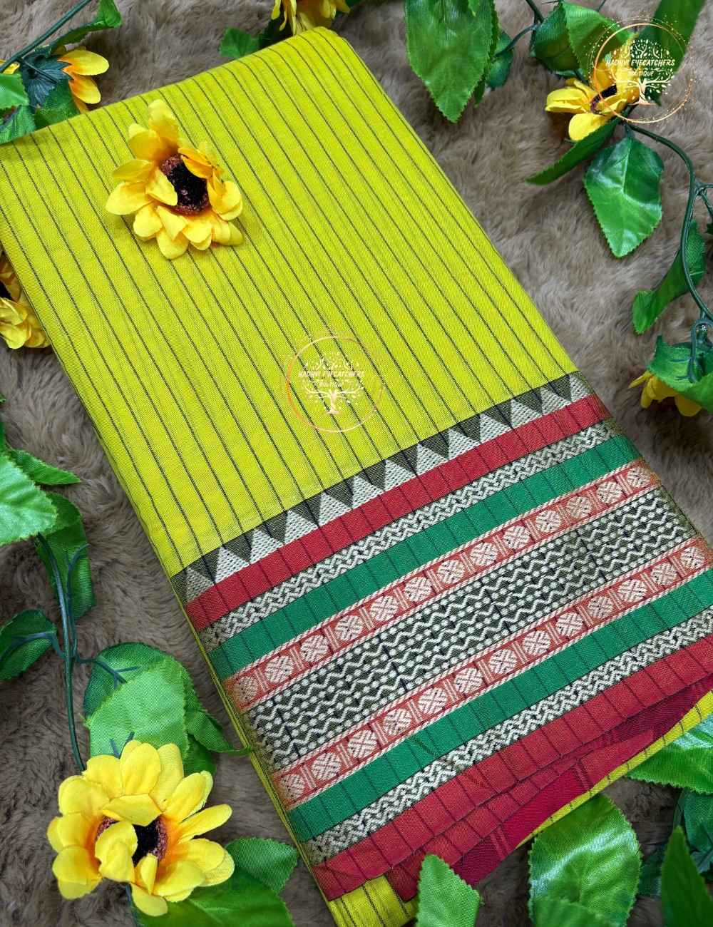 Refreshing expression of traditional South Indian handloom craftsmanship. Handwoven by skilled artisans of Narayanpet, Telangana, this saree stands out for its comfort, durability, and vibrant yet elegant appeal.