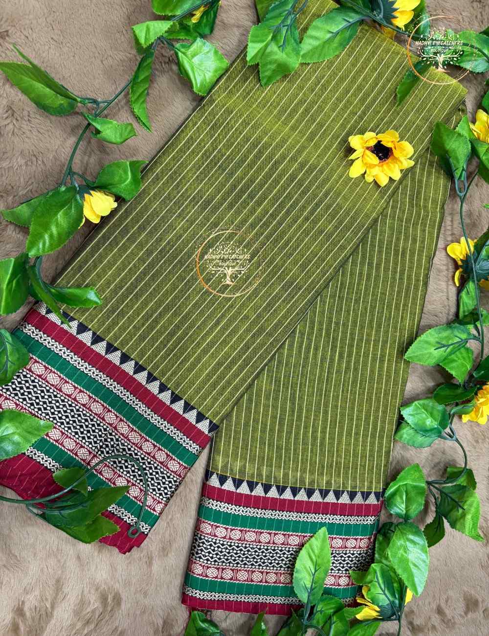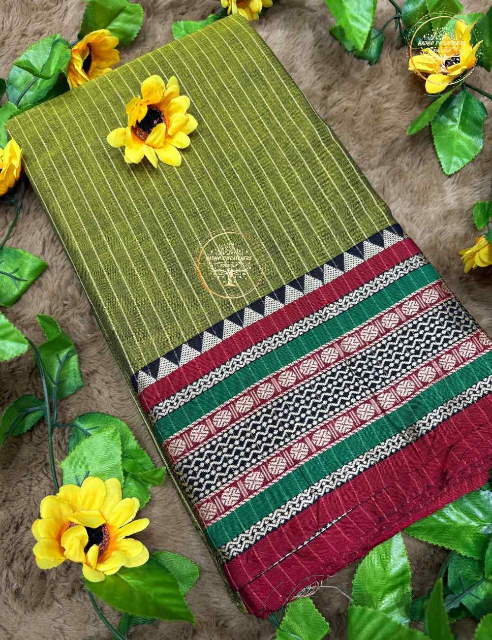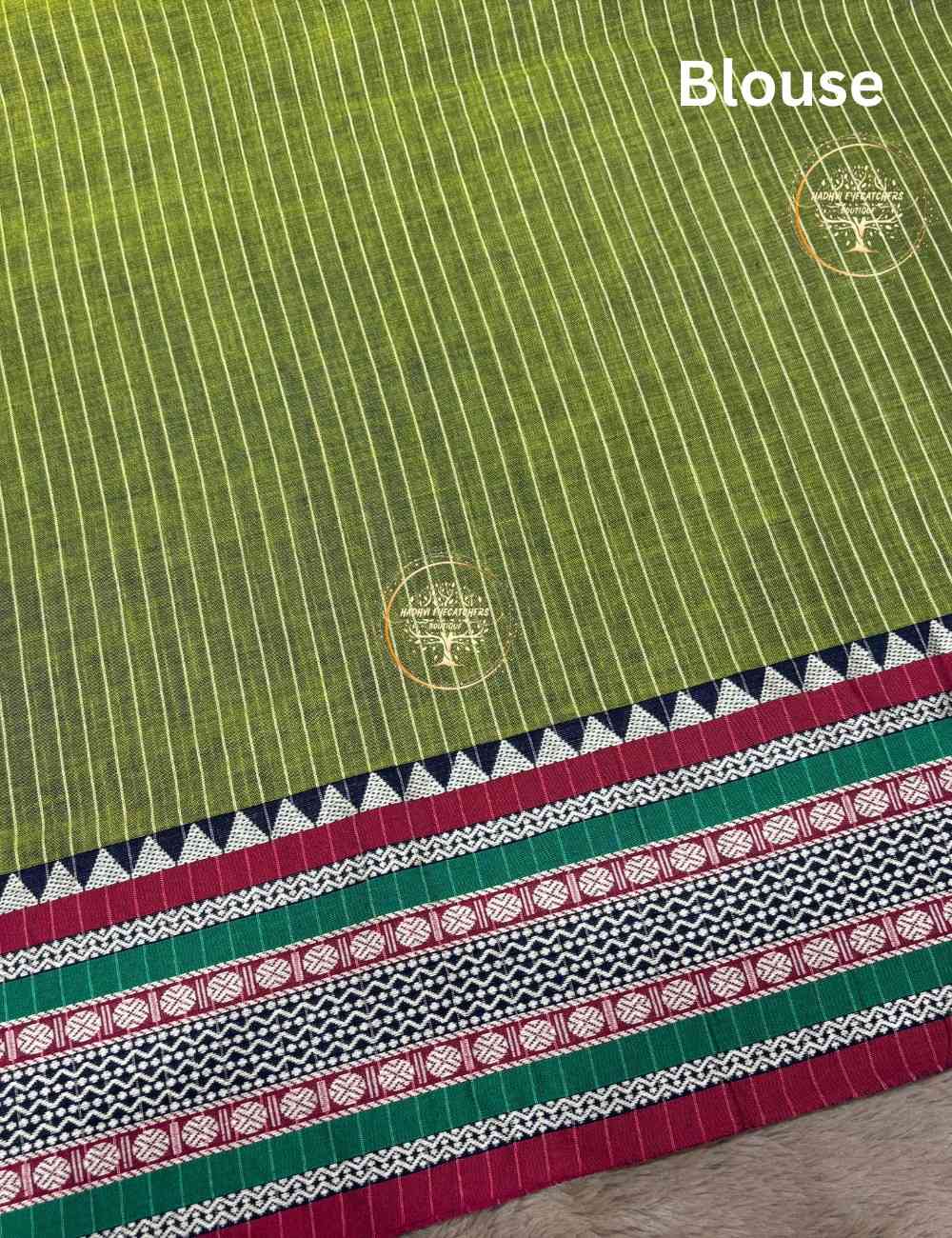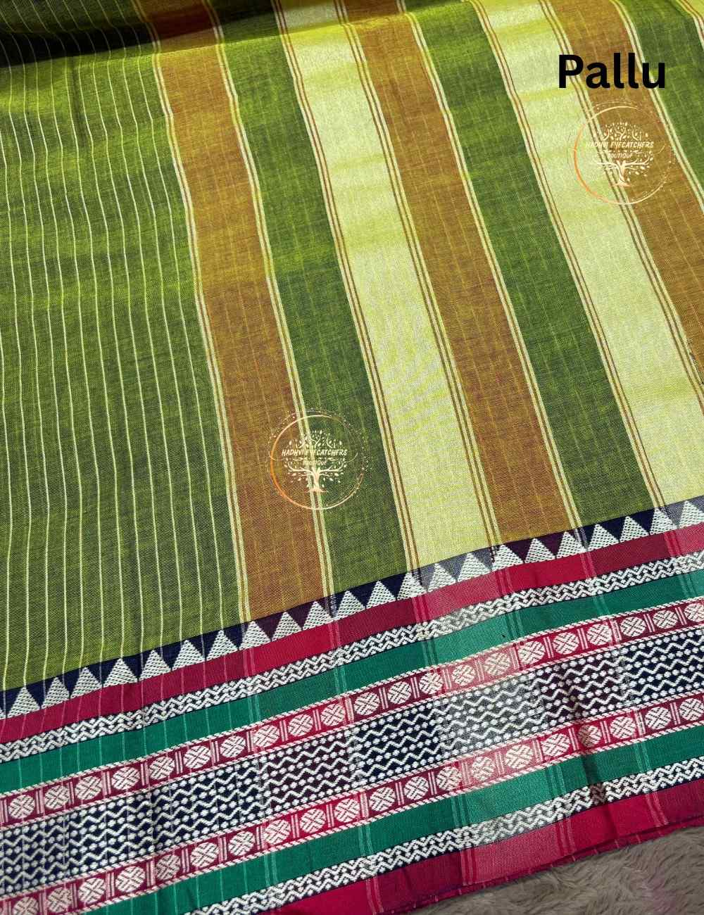 Be the first to review “Srinithi-Olive Green Narayanpet Stripes Cotton Saree”