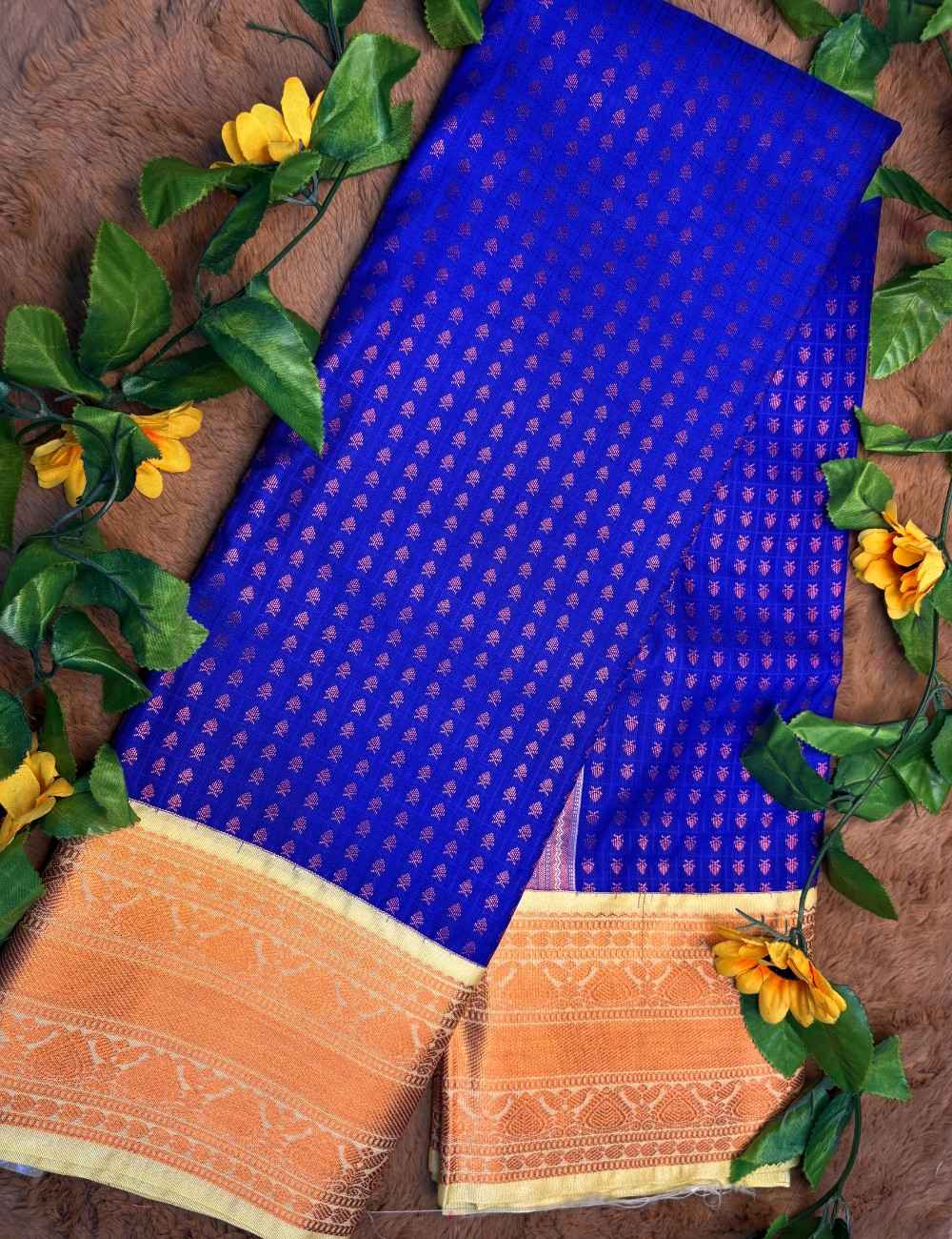 This Lakshadeepam saree showcases a rich blue body illuminated with delicate pink buttas, creating a vibrant and youthful texture. The Semi Kanchi Silk weave enhances the clarity and depth of the motifs, giving the saree a luxurious fall and radiant finish.