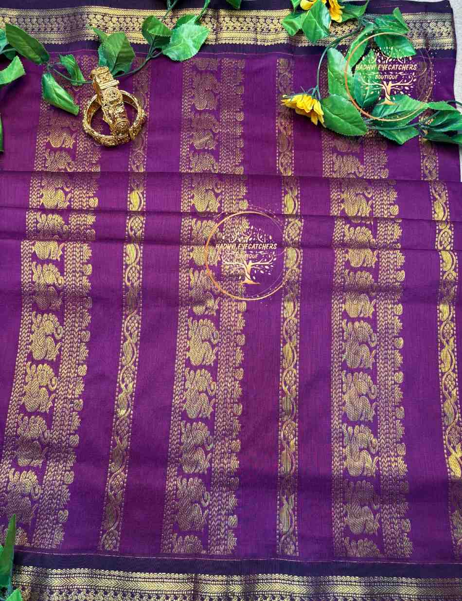 Ideal for traditional functions, cultural events, and temple wear, this saree combines comfort with classic South Indian charm. The zari border adds richness while the cotton base keeps it breathable and easy to drape.