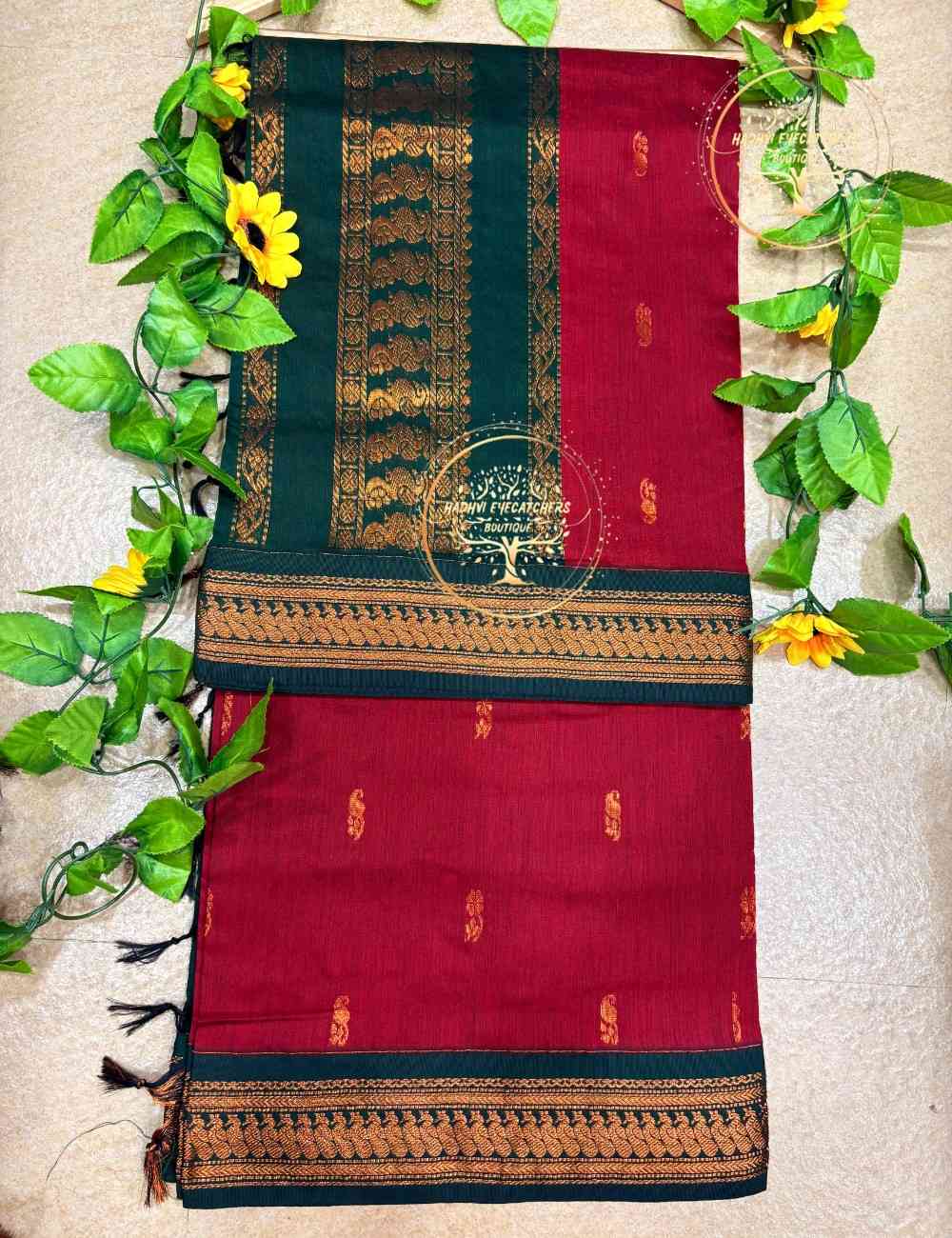 Be the first to review “Selvi – Maroon Kalyani Cotton Saree”