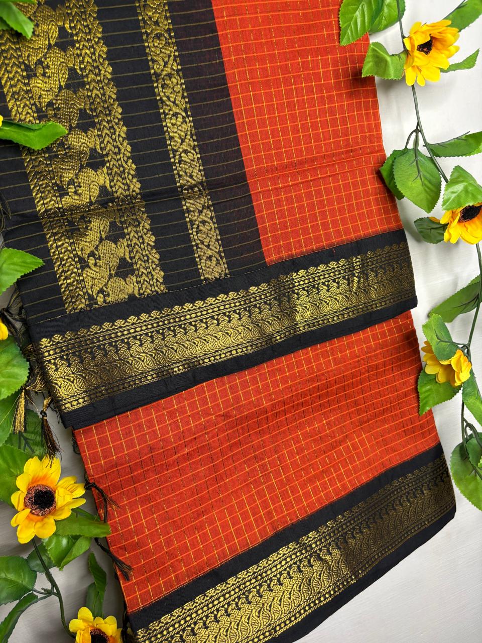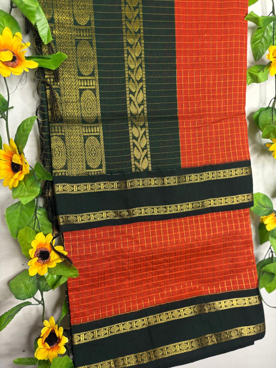 Elevate your ethnic wardrobe with our Premium Checks Kalyani Cotton Saree — crafted in-house with love and precision. Made from 100% pure cotton, this saree blends comfort, durability, and timeless elegance at an affordable price.